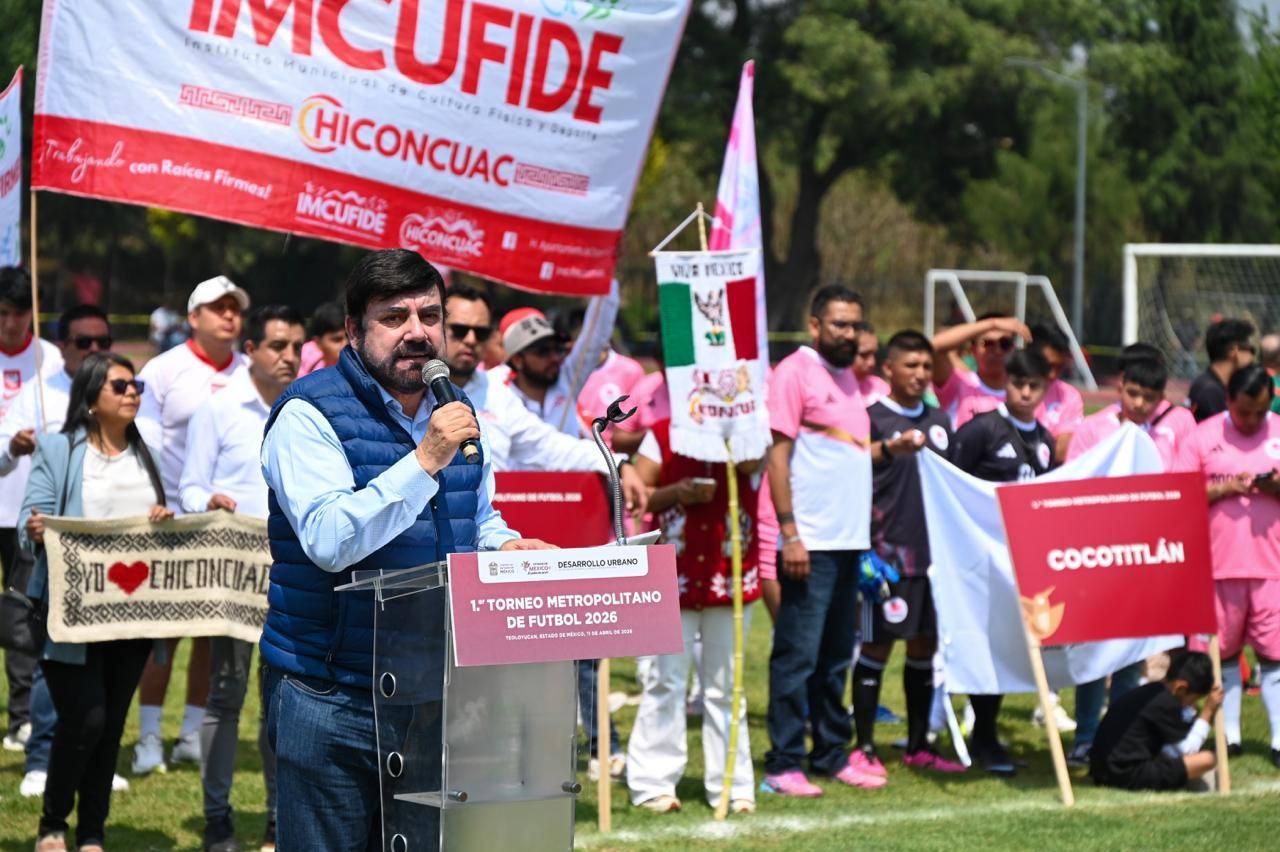 *TEOLOYUCAN,* Estado de México.– En el marco de la estrategia ’Estadio de México. Un Destino Futbolero’, el Gobierno de la Maestra Delfina Gómez Álvarez, a través de la Secretaría de Desarrollo Urbano e Infraestructura (Sedui), puso en marcha el Primer Torneo Metropolitano de Futbol 2026, una fiesta deportiva en la que participan más de 20 municipios del Estado de México, con el objetivo de fortalecer la identidad metropolitana y resignificar la importancia del uso de los espacios públicos recuperados para las familias mexiquenses.
