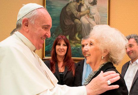 La activista argentina de 87 años, acudió al Papa Francisco ’a renovar el pedido’ de apoyo de la Iglesia para obtener datos que permitan la localización de sus familiares, ya que aunque la ayuda existe el procedimiento’ es muy largo y muy engorroso’, en el que tiene que intervenir la justicia de Argentina, estudiar el asunto y hacer la solicitud a la Santa Sede, que también analiza su procedencia.
