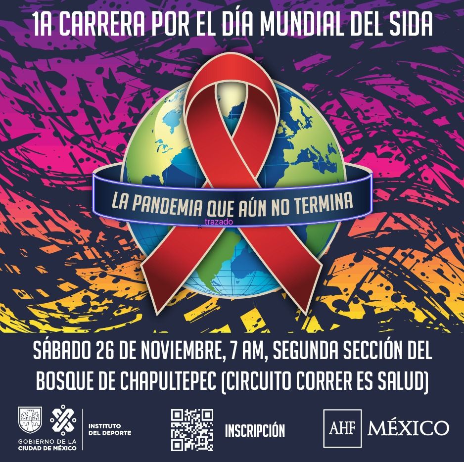Ciudad de México, .- Con el objetivo de informar y hacer un llamado para reforzar la prevención, detección y tratamiento del VIH, AHF México, con el apoyo del Instituto del Deporte de la Ciudad de México, convoca a la 1ª Carrera por el Día Mundial del Sida, en el marco del Día Mundial del Sida 2022 con el lema: "La pandemia que aún no termina".
