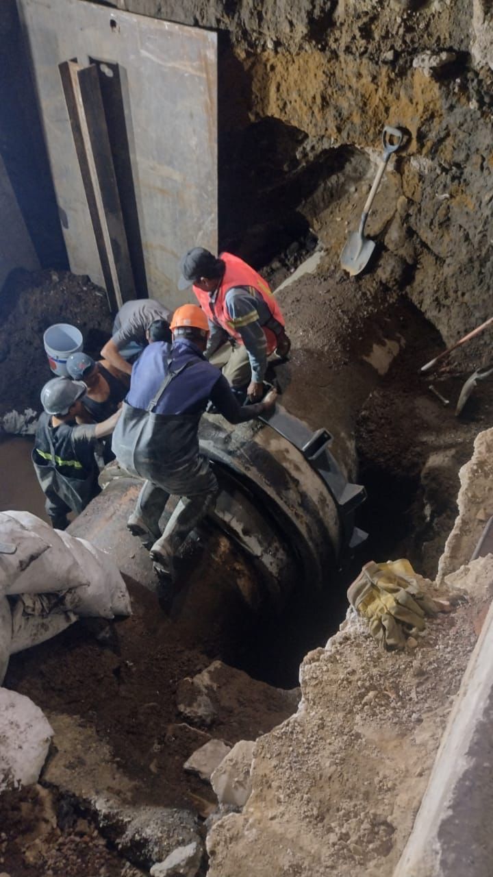Después de excavar para localizar la fuga, se logró contener el escurrimiento en ambas y en este momento se encuentran en la última fase de reparación con la colocación de una silleta tipo Zeta en la tubería de 42 pulgadas de diámetro para Ecatepec y una tipo Concha para Tultitlán.