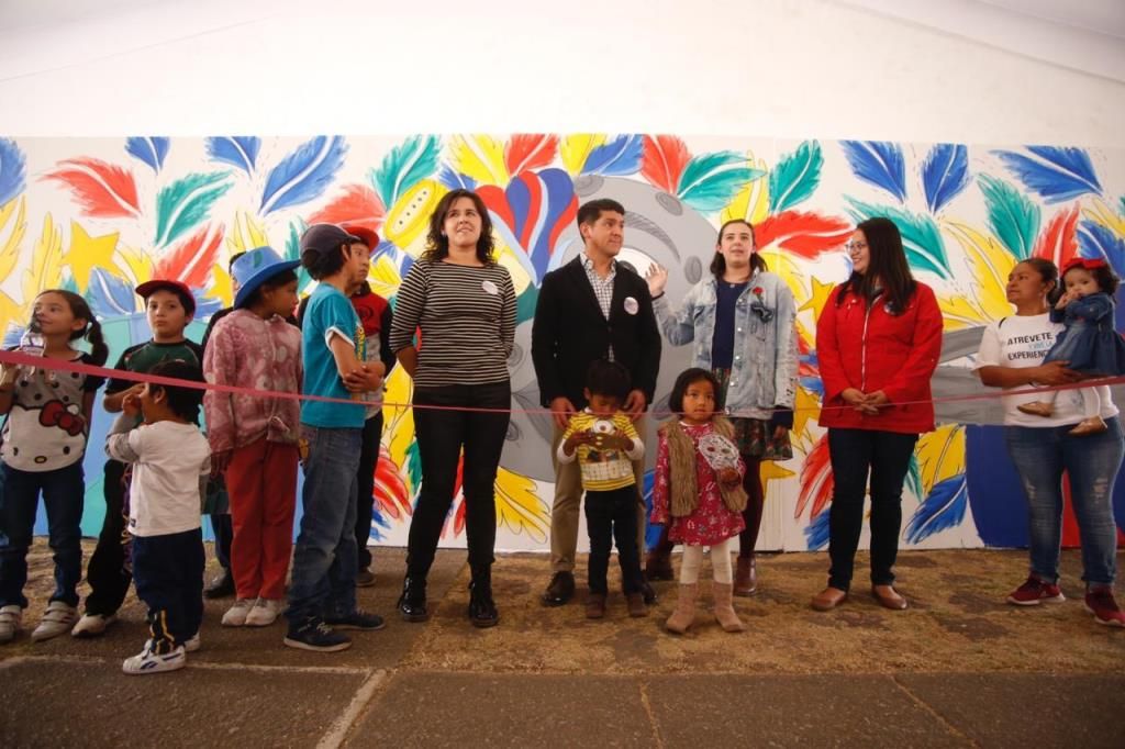 El mural está conformado por ocho mamparas de 2.44 metros de alto por 11.52 metros de largo, el cual fue intervenido por cerca de 800 niñas y niños, recorrerá siete Centros Regionales de Cultura y permanecerá durante un mes en cada recinto, iniciando este 14 de junio en el Centro Regional de Valle de Bravo.