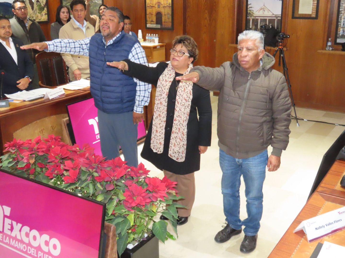 cabildo de Texcoco, el presidente municipal Nazario Gutiérrez Martínez tomó protesta a los tres directores que a partir de la fecha asumen sus