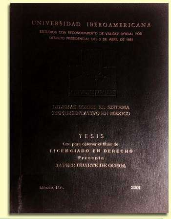 Su tesis para obtener el título de licenciado en Derecho por la Universidad Iberoamericana, por tanto, se enfocó los "Dilemas sobre el sistema representativo en México", al que en el texto calificó como único "garante del mandato del pueblo" ante la "falta de credibilidad en las instituciones políticas".
