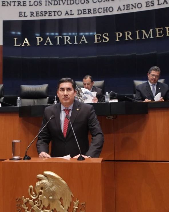 Pie de foto...El senador Esteban Albarrán Mendoza, en el pleno de del Senado de la República presentó una iniciativa de ley sobre el patrimonio histórico