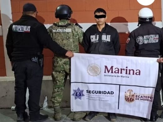 Ecatepec, Méx., a 27 de noviembre de 2025. Como resultado del operativo Tianguis Navideño, elementos del agrupamiento de Motopatrullas detuvieron a un sujeto en posesión de arma de fuego en la colonia Ciudad Azteca, a quien presentaron ante el Ministerio Público.