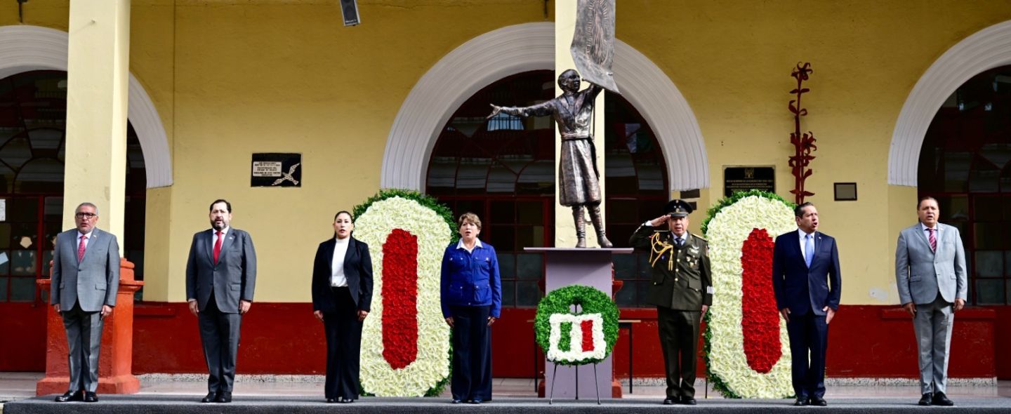 TOLUCA, Estado de México.- Para continuar con la conmemoración del 215 Aniversario de la Independencia de México, previo al tradicional desfile cívico militar, la Gobernadora Delfina Gómez Álvarez, acudió a la Secundaria Oficial No. 1 en Toluca para montar Guardia de Honor en el Monumento a Miguel Hidalgo y Costilla, el "Padre de la Patria", un acto de memoria colectiva e identidad nacional que reconoce su legado de libertad y justicia.