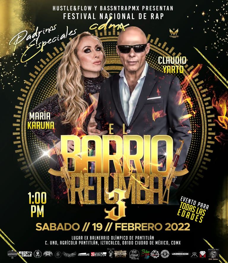 El Festival El Barrio Retumba 3 se realizará este sábado 19 de febrero en el Balneario olímpico - Pantitlán en punto de las 12:00 horas. con todas las medidas sanitarias.