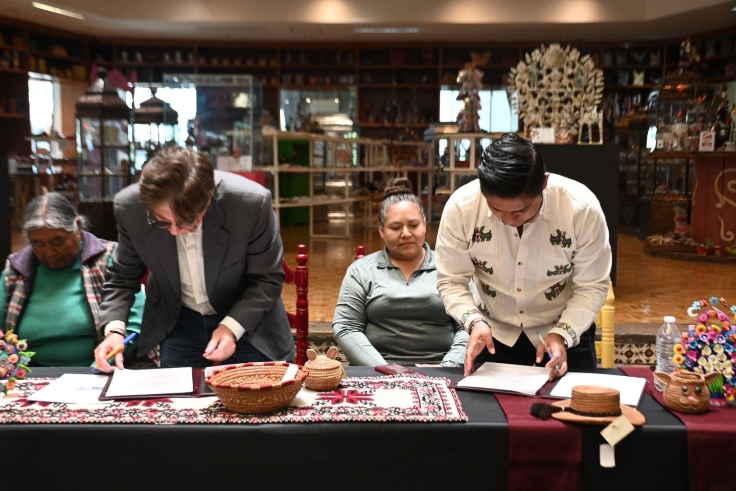 Agustín Herrera Pérez, Director General del IIFAEM —organismo dependiente de la Secretaría de Cultura y Turismo— informó que este acuerdo también contempla la capacitación, asesoría, credencialización artesanal y acompañamiento para integrar productos en tiendas Casart y ferias, además del apoyo técnico en procesos de registro y marca.