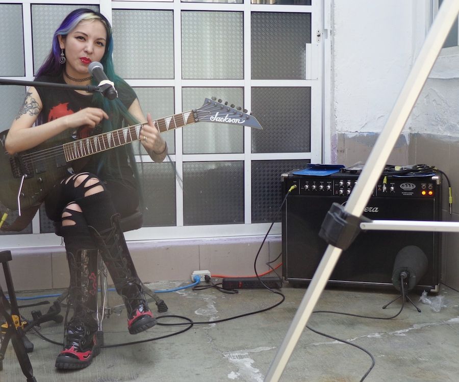 En las instalaciones de Vértigo una más de la Clínicas de Guitarra eléctrica, en esta ocasión impartida Cinthya Blackcat, guitarrista y fundadora del grupo de rock Mystica Girls.
