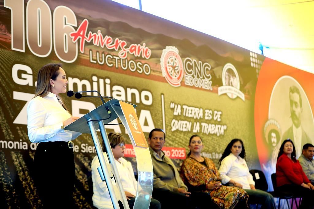 Acompañada por el bisnieto del Caudillo del Sur, Alejandro Bojorges Zapata, y de la presidenta municipal de Otzolotepec, la líder priista manifestó que la lucha por el desarrollo del campo sigue y es permanente hasta alcanzar la justicia social que hoy les niega un partido en el gobierno que acabó, desde el sexenio pasado, con las aportaciones presupuestales a este sector.