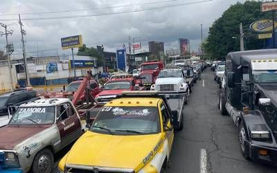 Tlalnepantla, Mex. - 10 de julio- Cientos de grúas, procedentes de varios municipios del Estado de México, se movilizan esta mañana en el municipio de Tlalnepantla y se dirigen hacia las oficinas de la Secretaría de Movilidad ubicadas en la avenida Gustavo Baz.