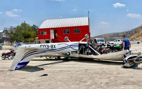 La avioneta tipo Cessna con matrícula XB EUJ se desplomó para caer con las llantas hacia arriba, y pese a lo aparatoso del accidente, los tripulantes solo resultaron con algunas contusiones sin que requirieran atención médica de urgencia.