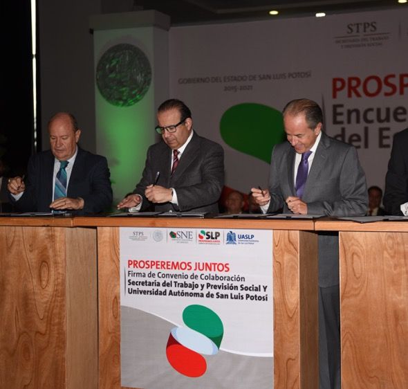 Este convenio permitirá establecer acciones conjuntas para elevar la empleabilidad de 3,000 jóvenes que egresan cada año de las 99 carreras que imparte la Universidad Autónoma de San Luis Potosí, a través de una promoción estratégica hacia los alumnos que cursan los últimos semestres de sus carreras mediante los servicios que de manera gratuita ofrece el Servicio Nacional de Empleo a través del uso del portal www.empleo.gob.mx.