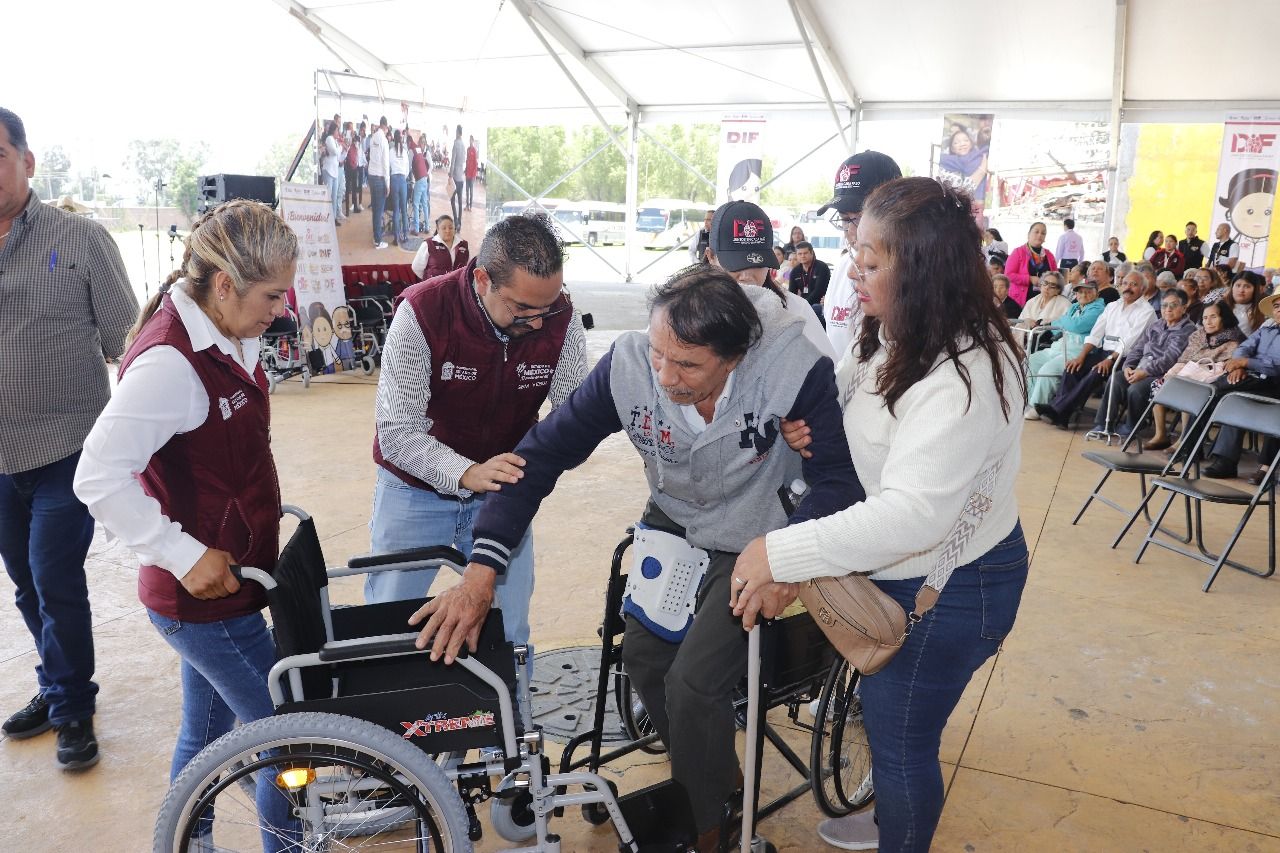 Los apoyos brindados cosistieron en sillas de ruedas, bastones y andaderas para dar una mejor calidad de vida a los beneficiados de los 13 municipios que acudieron en esta ocasión a este evento multitudinario.