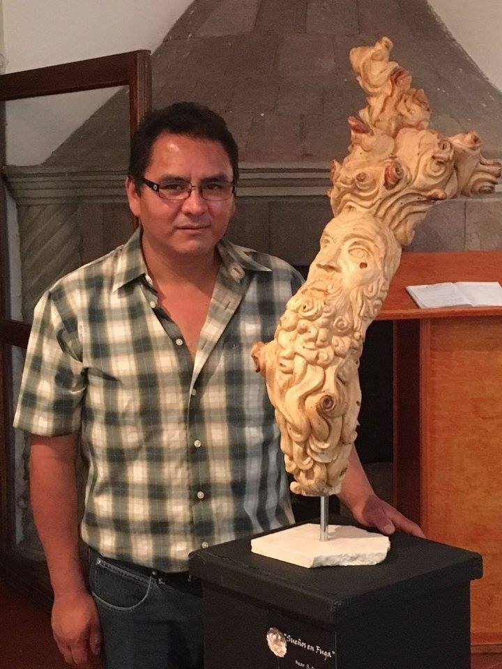 La gubia o la gurbia (una especie de cincel), el mazo, la escofina, la lija y los troncos son su compañía que se complementan con ceras, lacas, tintas para dar vida a todas las obras con técnica de talla directa en madera.